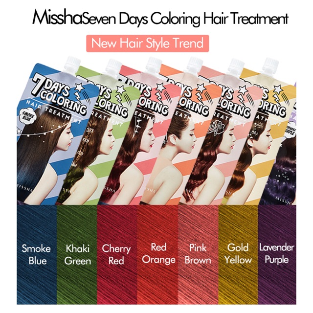 This treatment type hair coloring is no need to mix contents 1&2. Work quickly in 5 minutes. Today i tried out missha's 7 days coloring hair treatment! I just make it for fun and try a different color that fades over the 7 days. The dyeing process is relatively easy too —. I just make it for fun and try a different color that fades over the 7 days. To see follow up photos please check. As soon as 7 days coloring hair treatment was released, just in a month's time, 40,000 units were sold making up to about 1.8 billion krw (based on the statistics from february 2017 to august 2018). I fell in love with their colors and i mentioned it in my wishlist, but i didn't get the courage to do it. Simply apply colour treatment onto selected. Enriched ampoule ingredients protect hair while giving nutritions for hair coating care. This missha 7 days coloring hair treatment if for trying new. Color fades after a week and is restored to the original color without damaging hair.
